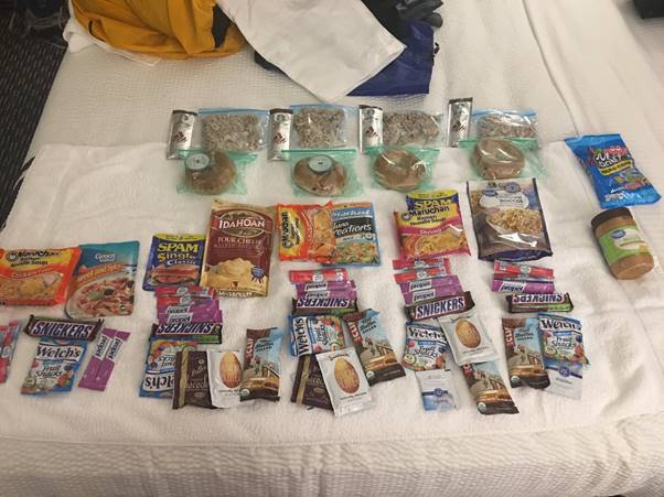 Dinner – Spam and mash or ramen noodles and tuna were my staples. Sometimes I had a mountain house dehydrated meal, which were delicious but a little on the expensive side. Hot chocolate or tea if I could be bothered.