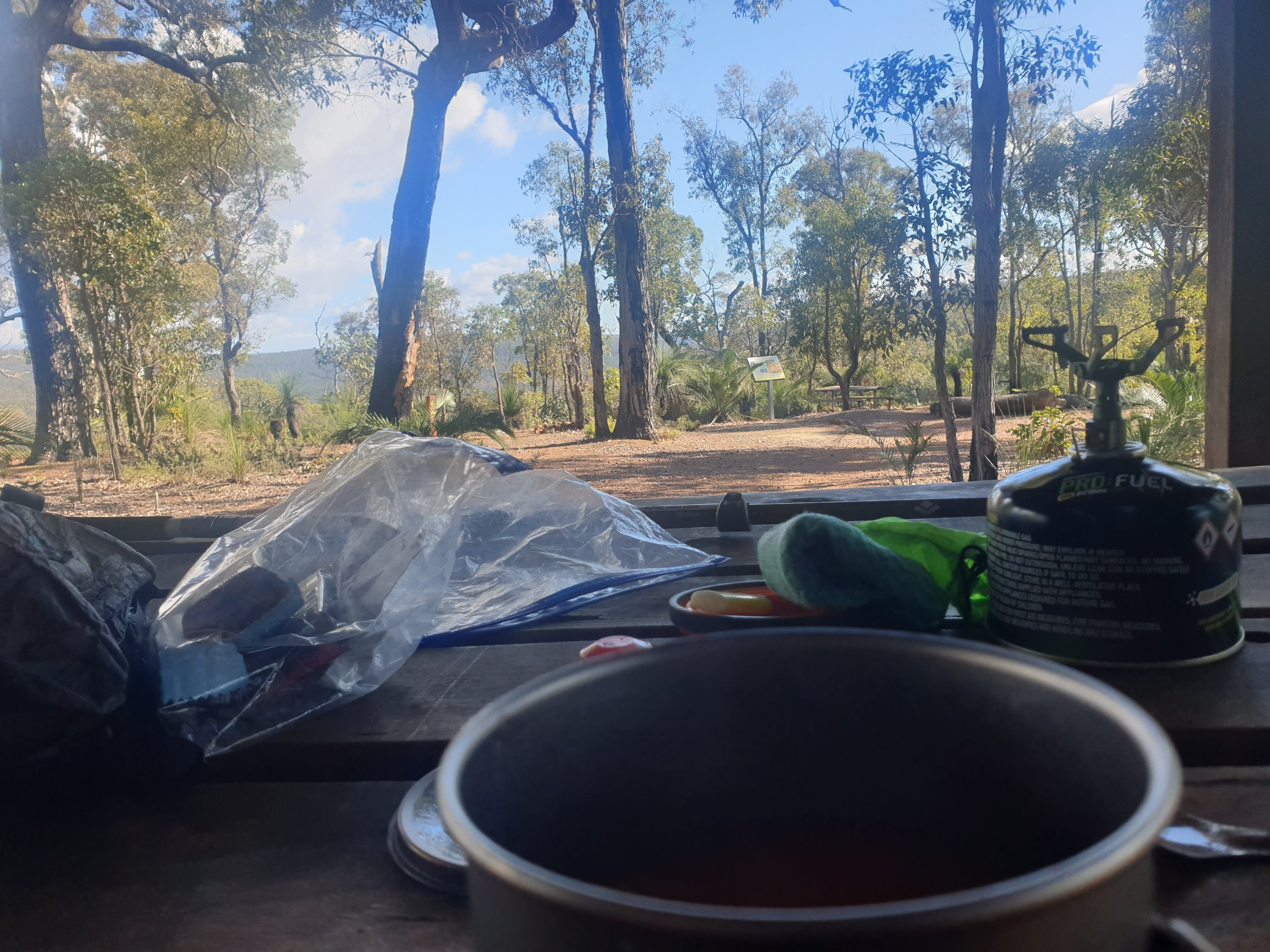 I was maybe 100 metres from the shelter when a northbounder trudged past me. He said g’day and kept going. Obviously on a mission to get the shelter. But I recognised him. I said “Are you Mick Becker’s?” Which stopped him dead in his tracks, he was! I told him how much I enjoyed his videos and blog and we chatted about the Bibb for a bit. He was on his 2nd last day. He warned me that the Dwellingup to Collie section was flat and dull. After taking a selfie with me he was on his way. I forgot to take one of my own, but here is the one he posted on his blog.