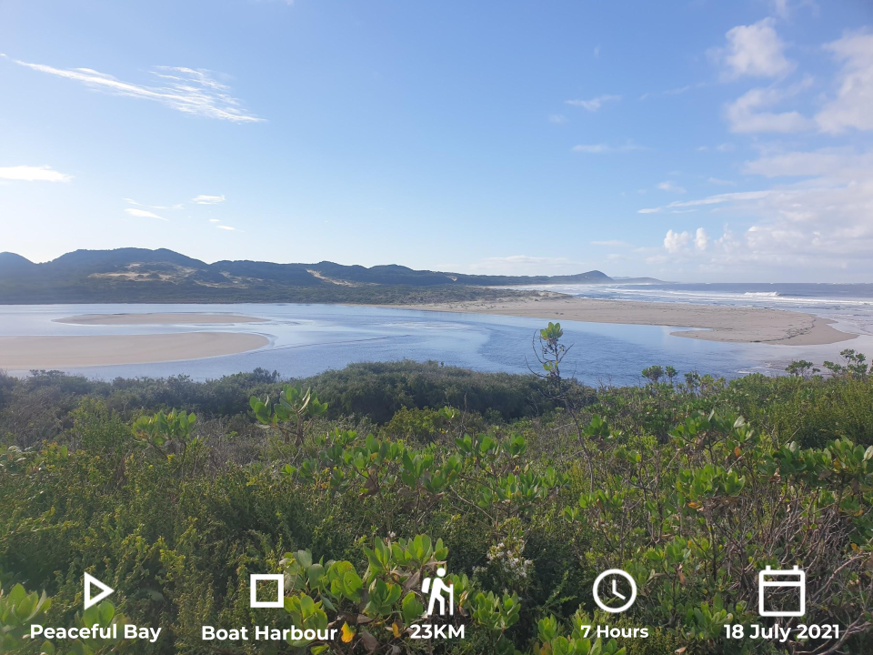 After the crossing, the track climbed up from the inlet and then meandered over the rolling hills, peppered with Roos, heading back to the beach. Then there was some more beach walking along the other side of Peaceful Bay. It was beautiful, but in a lonely, desolate way.