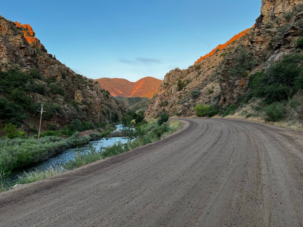 It was dark when I started at 5am and it was cool to watch the sun slowly rise as I made my way through Wateron canyon. The first 6 miles of the trail is on a gravel road as it follows the river up into the canyon. Pretty cruisey, but also pretty.