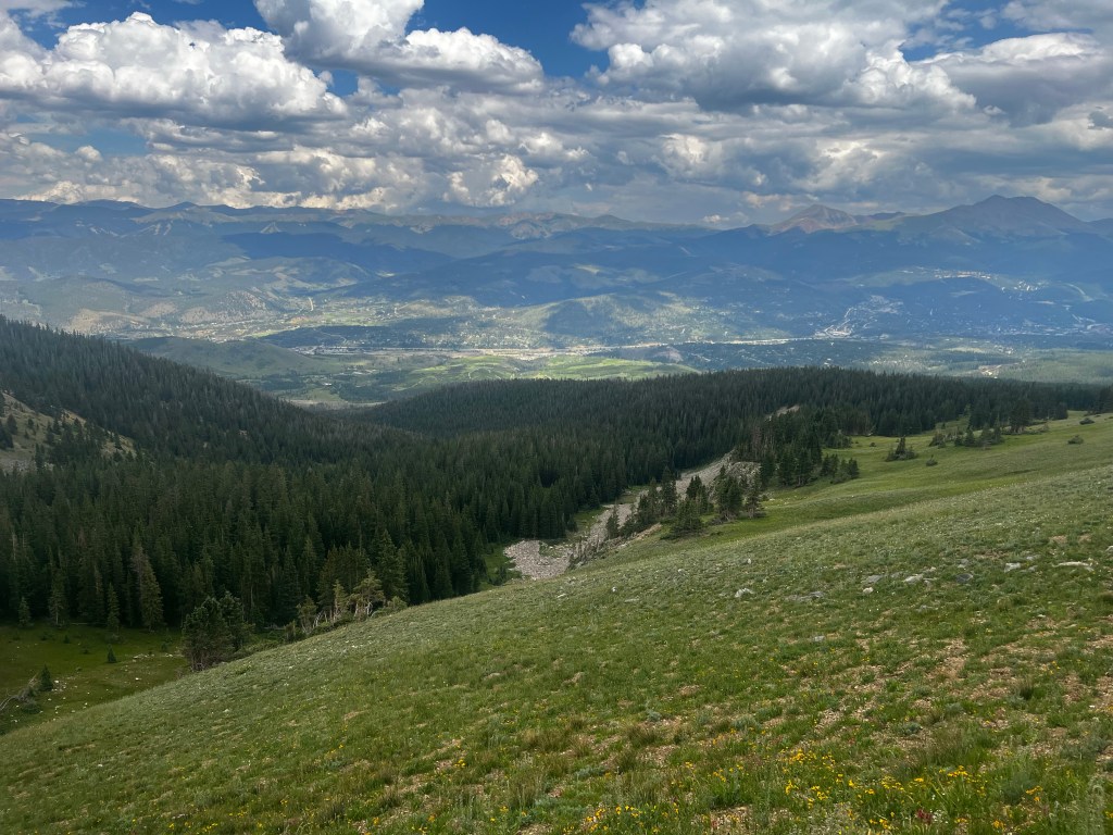 But after the fun of not hiking, I had to get back on the trail. So I was up early to catch the bus back to the trailhead. The goal for today was to get up and over the mountain and head down to Copper Mountain resort. Only 13 or so miles, should be easy right?