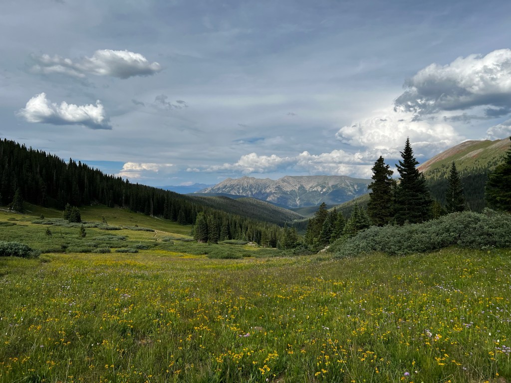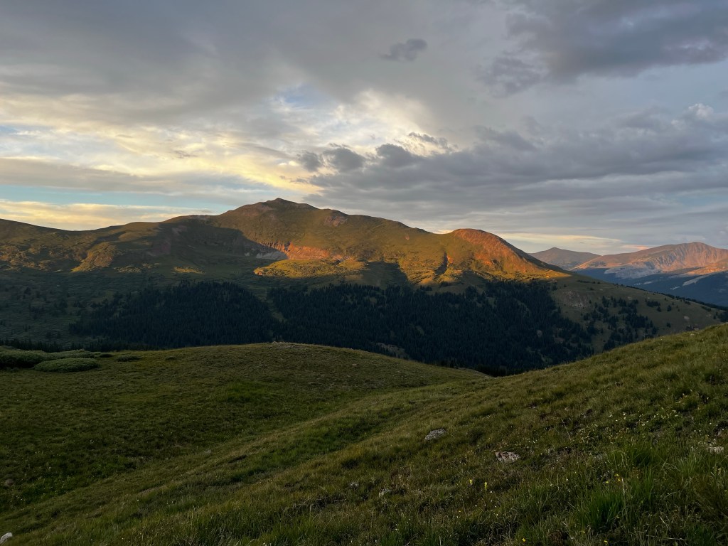 Strangely, I got a burst of energy after the pass and decided to push on and finish the climb for this section, making for an easier time into Leadville tomorrow. Elk Ridge was the next target, and it was tough, with lots of false summits, but again there was elation on getting to the top. After that it was a quick mile or so down to Kokomo pass (felt weird walking down to a pass…). The sun was all but set by the time I started heading down from the pass. Apparantly there were some good camp sites a few miles after Kokomo, but I could not see them in the dark, so I pushed on for another few hours, always descending, until I finally hit one of the few good campsites in this section at 9:30pm. You could tell that campsites were rare here, because there were about 5 other tents set up already.